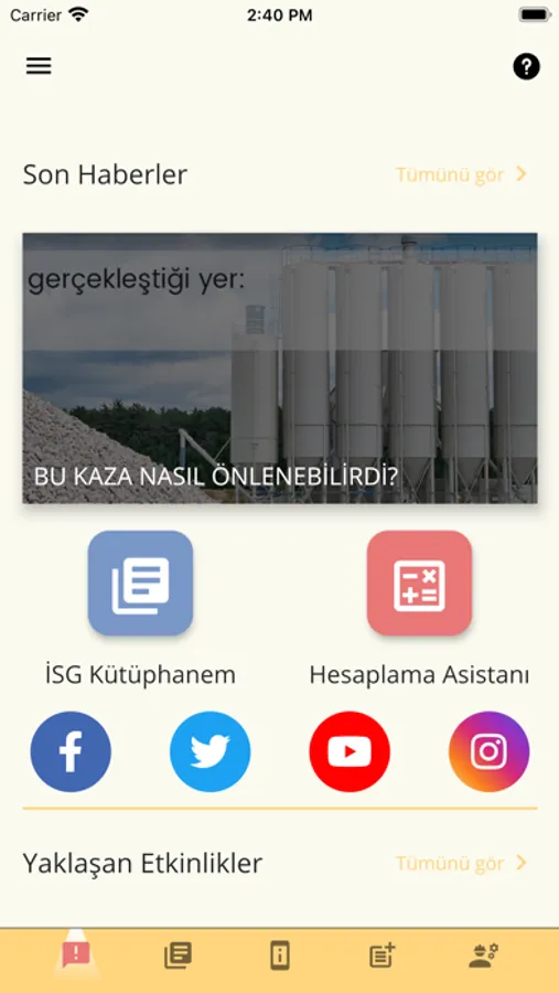 *İSG Uygulamalarım: İSG Profesyonelleri çalışmalarına pratiklik kazandıracak Pusula, Hesaplama Asistanı, 5x5 Risk Matrisi arayüzlerinin yanı sıra kullanıcılar Tamamla Paylaş ve Tehlikeyi Fark Et arayüzleri ile boş zamanlarında iş sağlığı ve güvenliği kültürlerine katkı sağlayacak içerikleri inceleme fırsatı bulacaklardır.