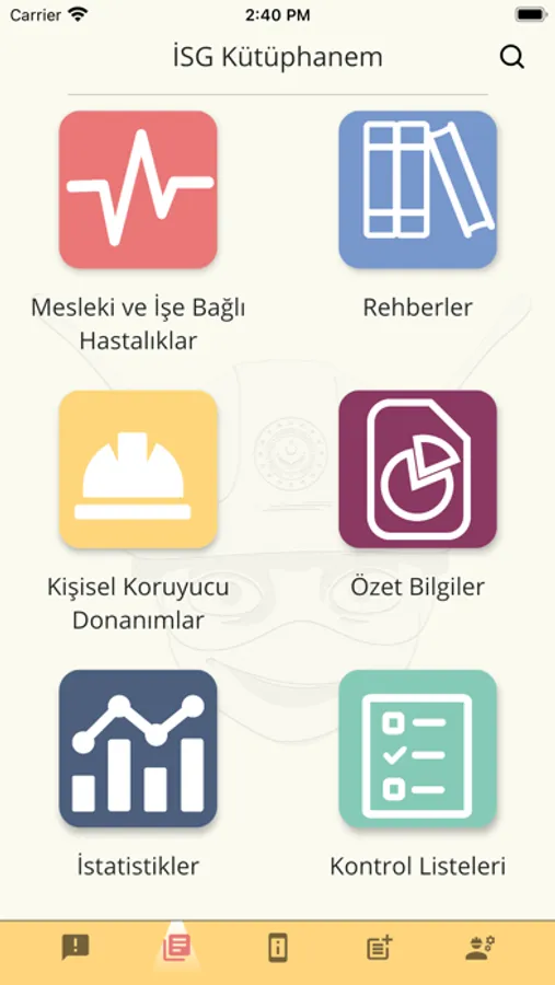 *İSG Kütüphanem: Sektörel İSG Rehberleri, Kontrol Listeleri, Acil Durumlar, Kişisel Koruyucu Donanımlar ile İşe ve Mesleğe Bağlı Hastalıklar, İstatistikler ve Özet Bilgiler alt modüllerinden oluşan arayüz sayesinde kullanıcılar en riskli sektörler için pratik iş sağlığı ve güvenliği dokümanlarına ulaşabileceklerdir.