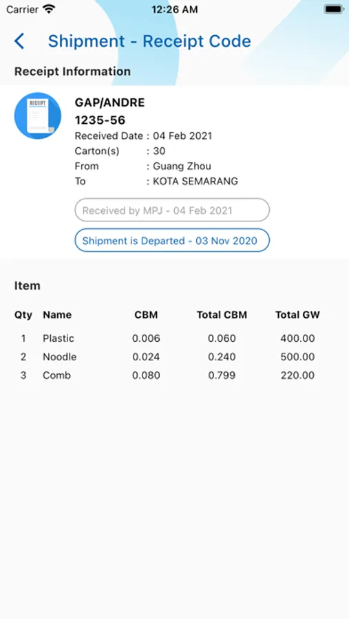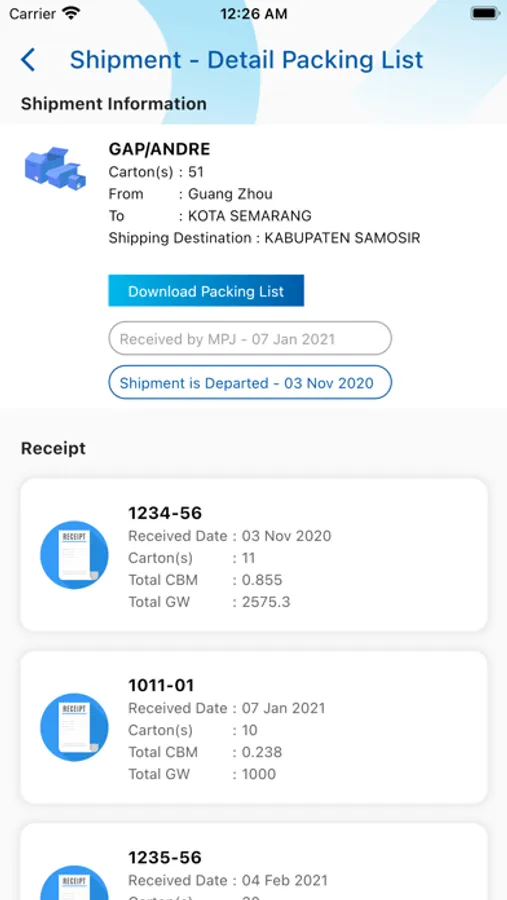 In MPJ Cargo Apps, customer can find latest information regarding shipment broadcasted by CV Mandiri Prima Jaya.