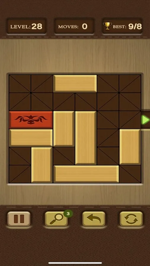 El objetivo del juego es sacar el bloque de madera roja del tablero deslizando los otros bloques fuera de su camino. Cuantos menos movimientos uses en sacar la tabla, más estrellas recibirás.