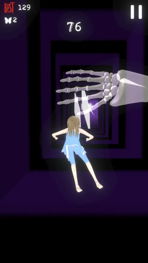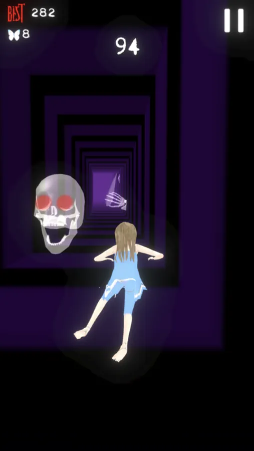 Little Sophie's Nightmare is a game in which our main character finds herself in her mind's nightmare tunnel. Your help is needed in order for Sophie to go through the terror corridor while collecting butterflies and avoiding bones and other obstacles.