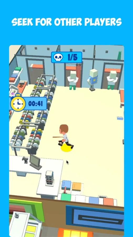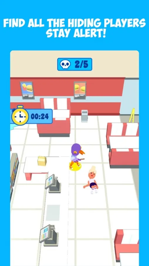 You have only 30 seconds to hide. Look for a suitable place and try to blend in with the interior. Otherwise, you risk losing a game and getting hit over the head with a baseball bat. But for each round you win, you'll get the money that can be spent on buying awesome characters.