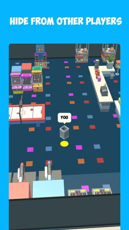 To hide properly, you'll have to turn into a lamp, a slot machine, or ... a toilet. Be careful, don't give yourself away! It's not so easy to hide in the store if you're a toilet;)