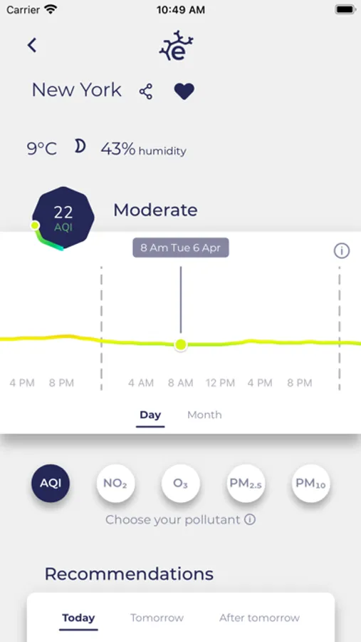 eLichens Air mobile app provides you with relevant information of your air quality. Thanks to the AQI (Air Quality Index), the app will let you know if the air quality around you (and your loved ones), is healthy or not. In addition, eLichens advises you on air quality levels (associated with pollutants) and their impact on your health and activities.