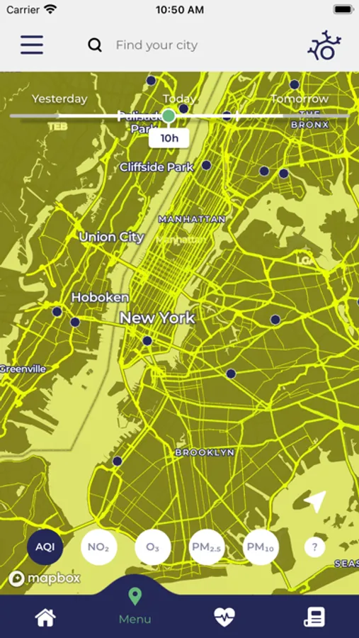 The app will give you current, past and forecast air quality everywhere and with an accurate street-level data, available in over 300 cities where the eLichens' hyper-local model is deployed.