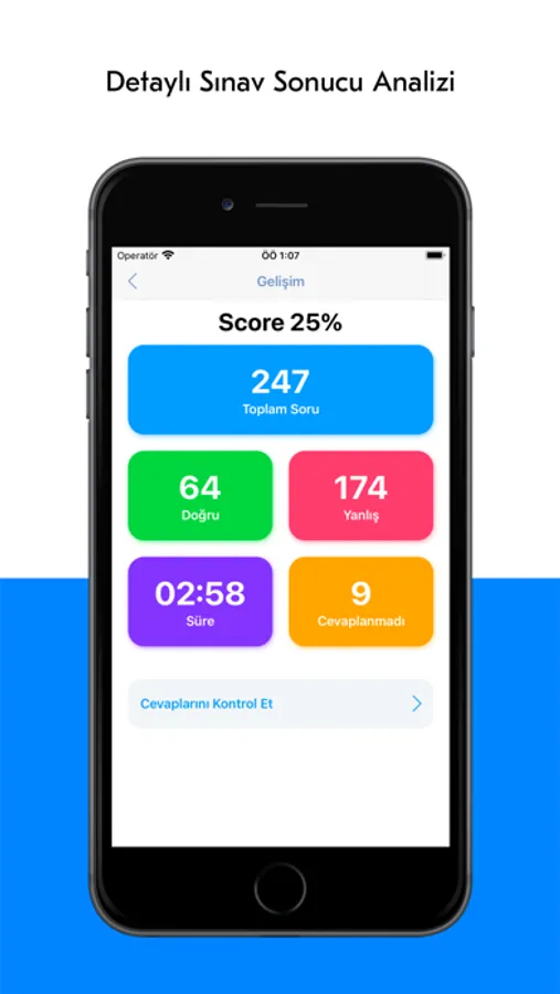 At the end of the exam, you can see your mistakes with detailed analysis screens.