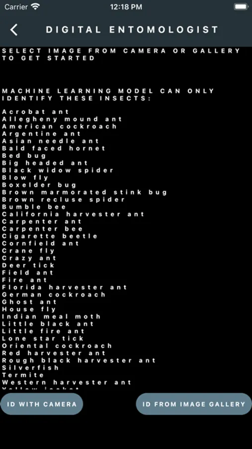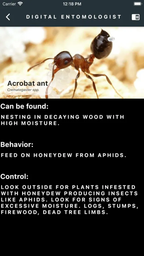Identify an insect from camera or select an image to analyze from your image gallery! Identifying an insect also found in the reference guide automatically provides information on that pest.