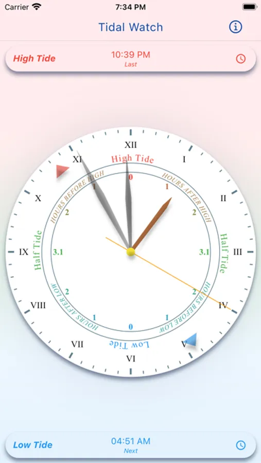 Tidal Watch is a clock specifically designed to keep track of the coastal tides at a designated geographic coastal location, offering a simple and reliable way to keep track of local tides.