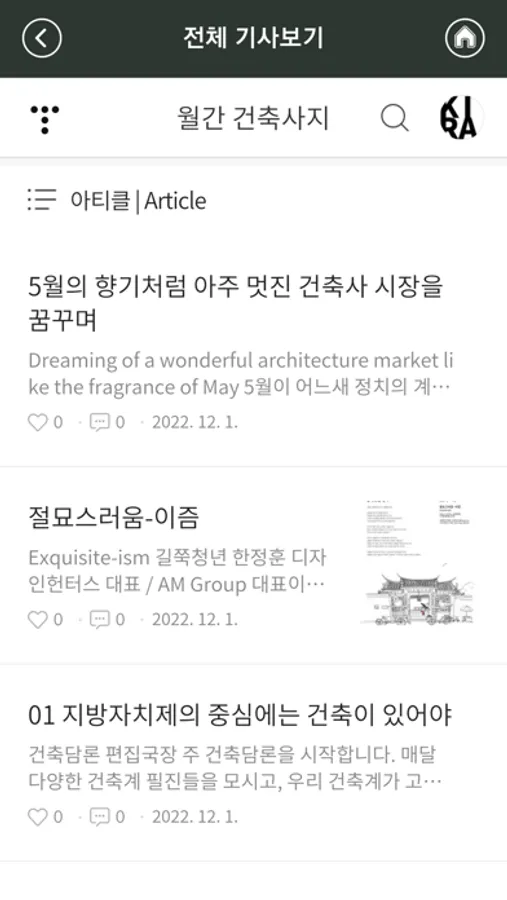 ‘건축’이란 공간을 통해 사람들과의 소통을 꿈꾸는 월간 건축사 웹사이트와 페이스북에서는 건축계 안팎의 최신 소식을 만날 수 있으며, 월간 「건축사」의 모든 콘텐츠를 살펴볼 수 있습니다.