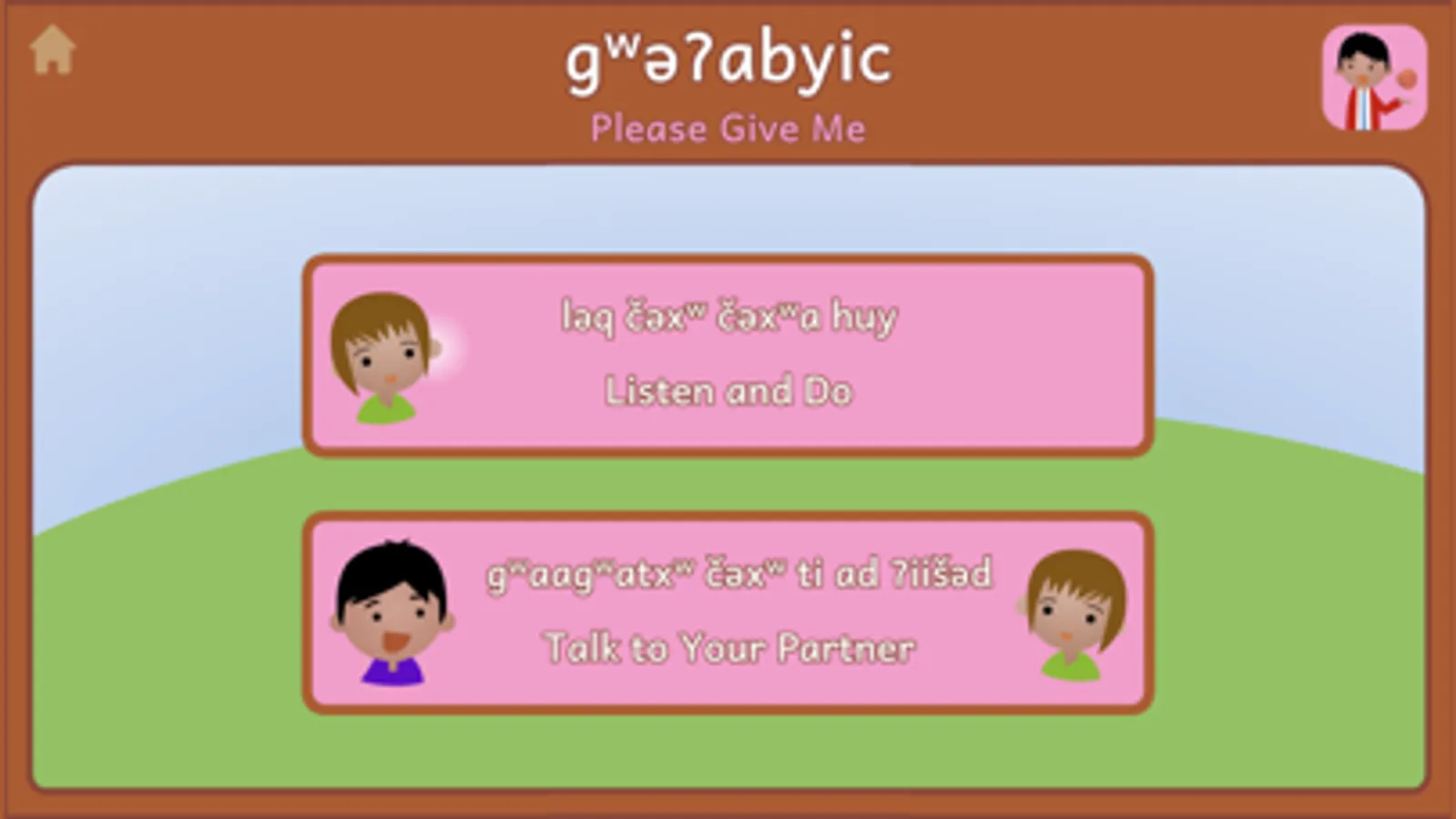 Set this app on your table, and you and your family can practice the language of our elders as you share a meal together. Learn and practice how to say "Please give me..." and "Please pass the __ to __."