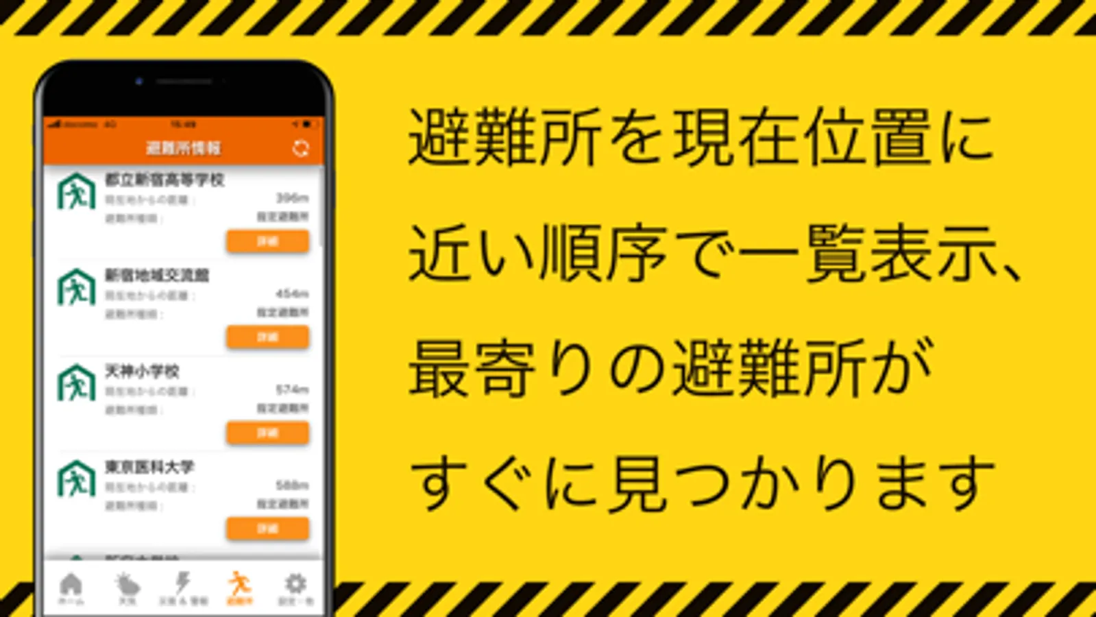 ・あなたが今いる場所(※2)近辺の避難所(※4)のリストを一覧表示します。
