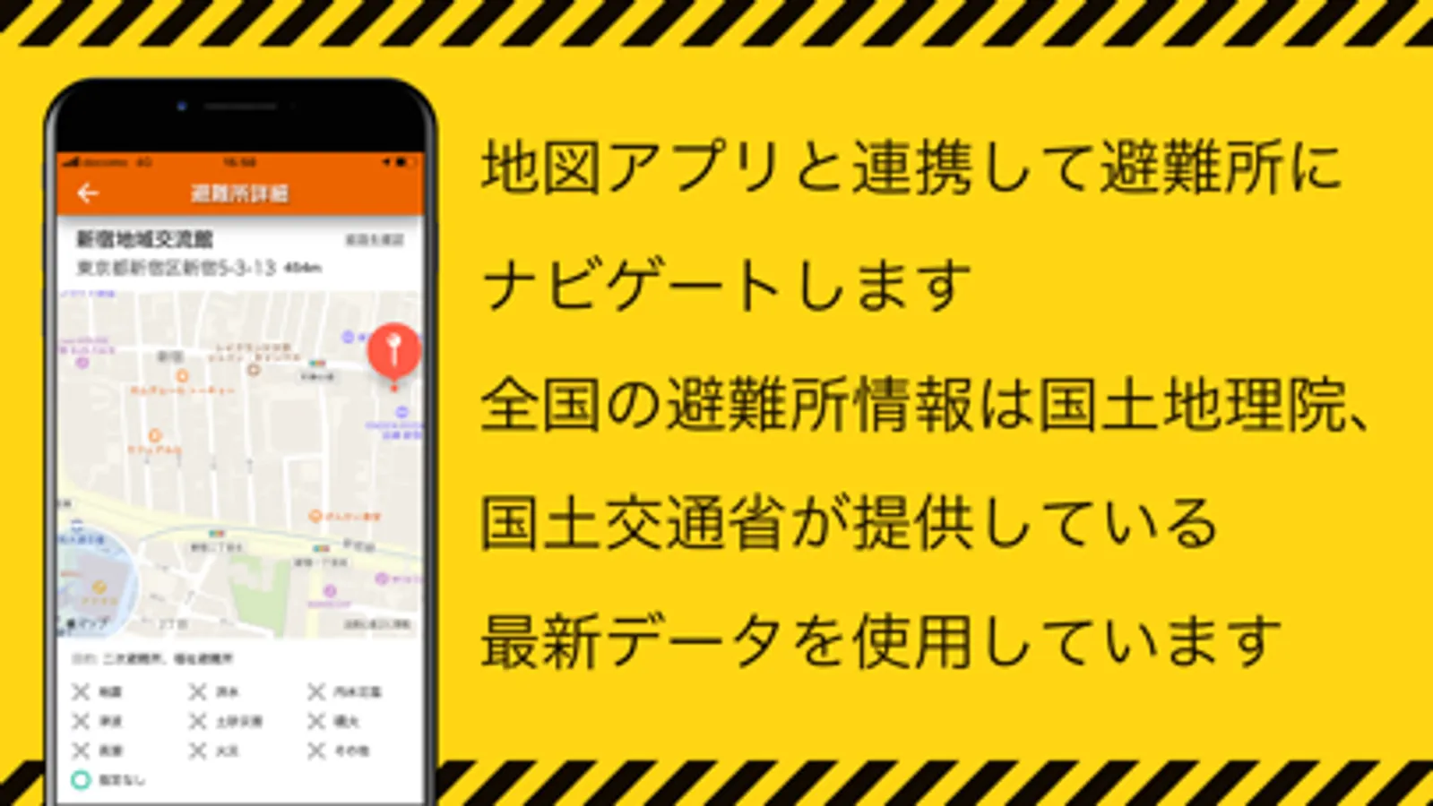 ※4 国土交通省が提供している避難所データを使用しています。