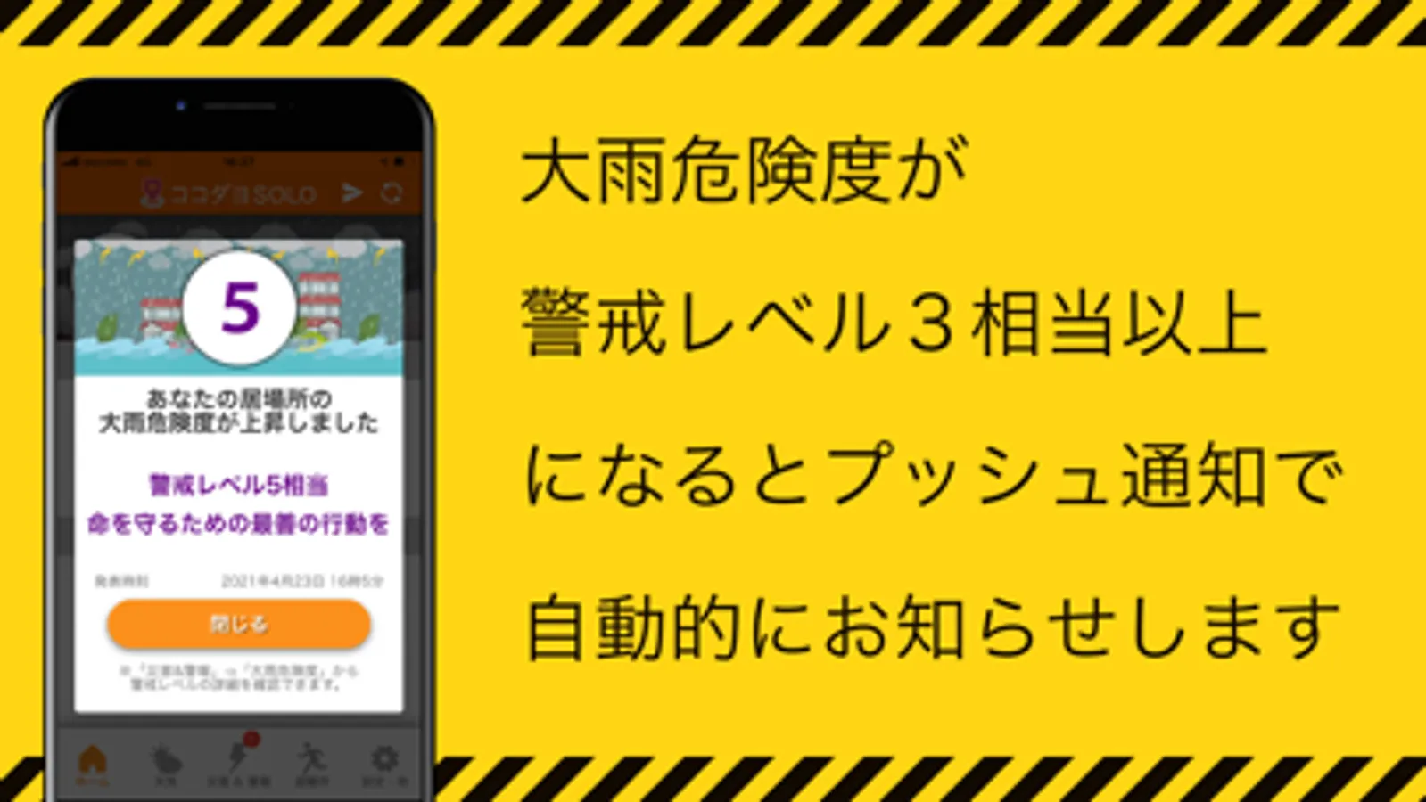 ⑤ 地域ごとの様々な災害警報を通知!