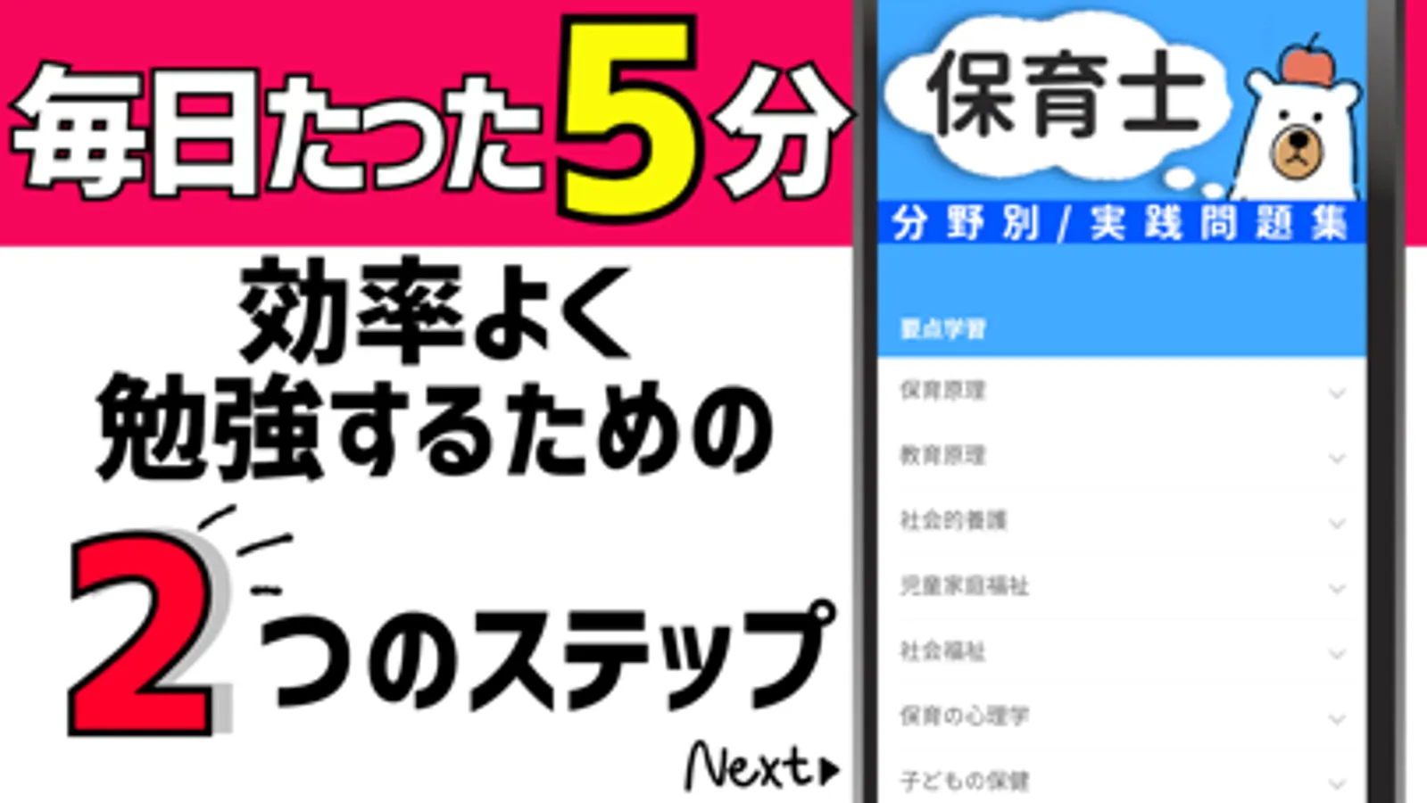 保育士試験の過去問対策、分野別問題アプリです!
