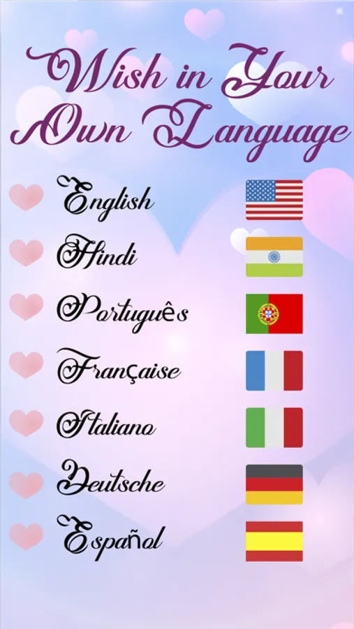 Valentine's Day Messages in Different Languages like, English, French, Italian, German, Spanish, Hindi, Portuguese.