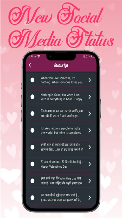 Best Valentine's Day Status Share Status on Social Media with your love ones with this app.