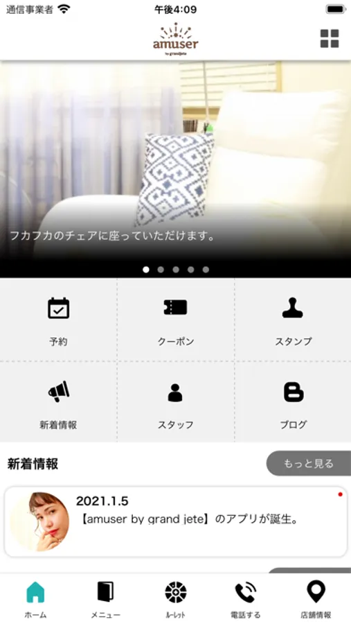 アプリを通して「amuser by grand jete」の新着情報やお得な情報をリアルタイムで受け取ることができます。