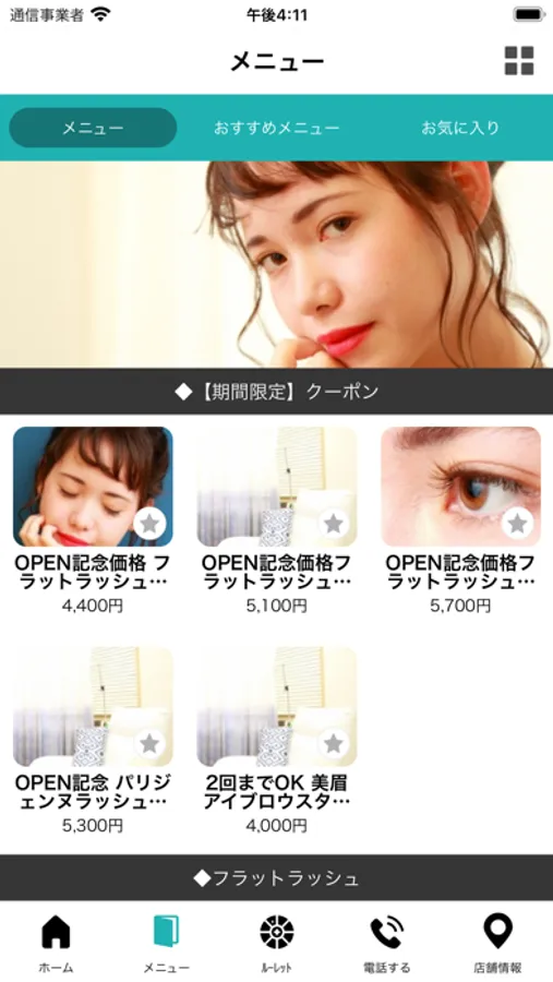 ご来店スタンプをためるとお得なクーポンが発行されます。