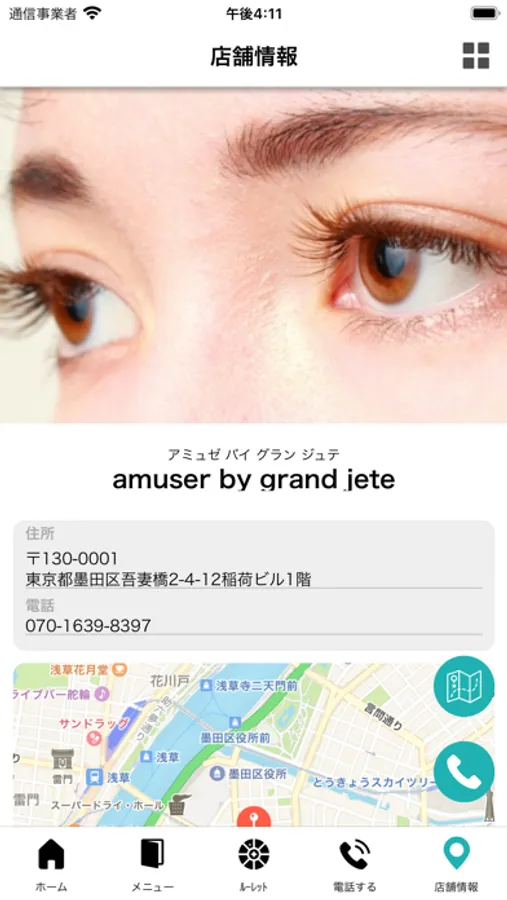 店舗のマップが表示され、地図アプリとも連携しているので、初めてのご来店の時も簡単に見つけることができます。