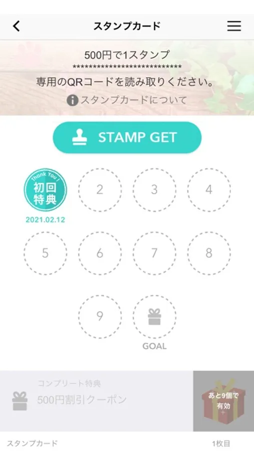 ご利用金額に応じてアプリ内にスタンプが貯められます。