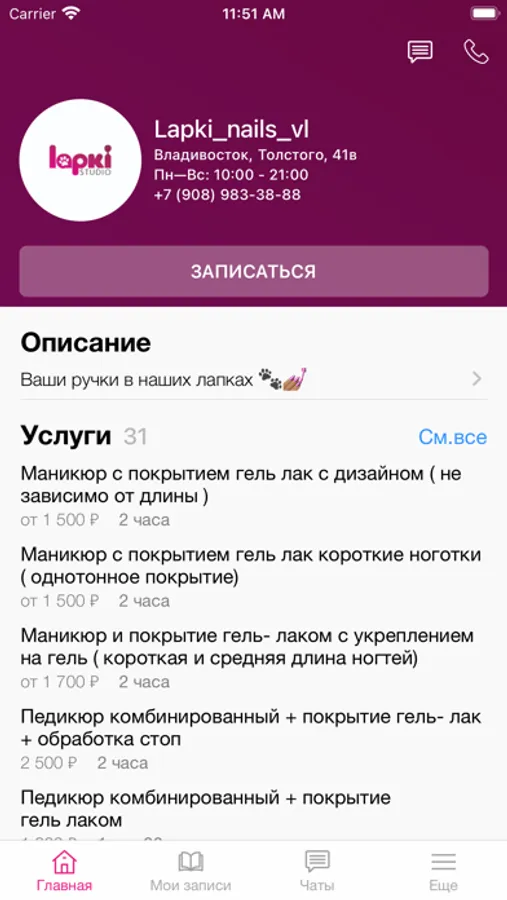 Lapki Studio - это официальное мобильное приложение лучшей студии ногтевого сервиса в городе Владивостоке!