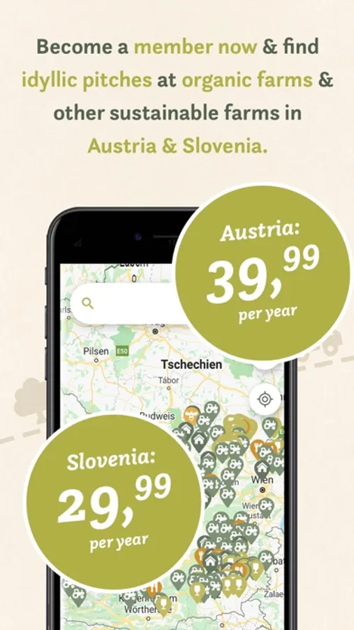 Your digital camp pitch guide with idyllic and natural pitches for members only (AT: 39,99 €, SI: 29,99 € / year).
