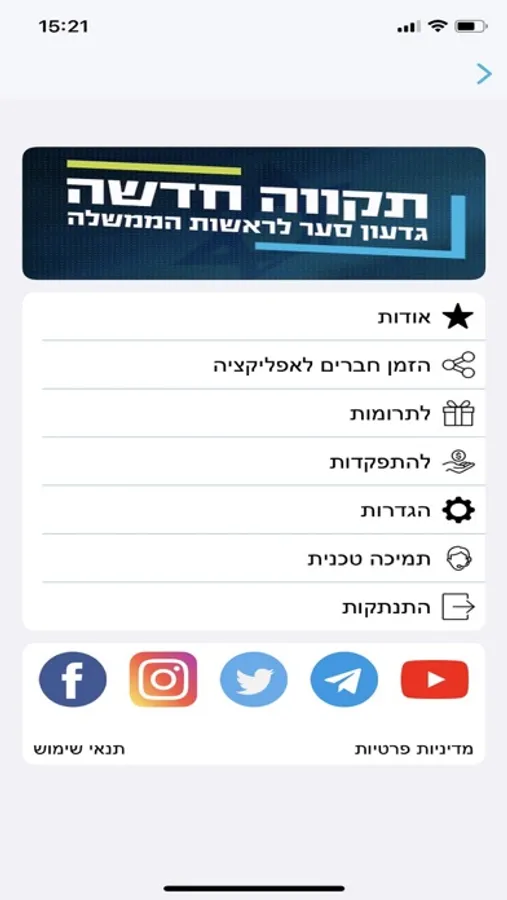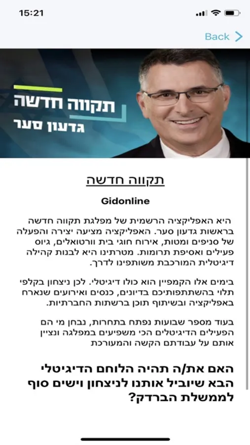 האפליקציה הרשמית של תקווה חדשה - תנועתו ומפלגתו של גדעון סער.