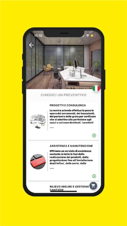App menu digitale che permette di scegliere il materiale che più preferisci per i tuoi infissi e acquistare direttamente dall'app.