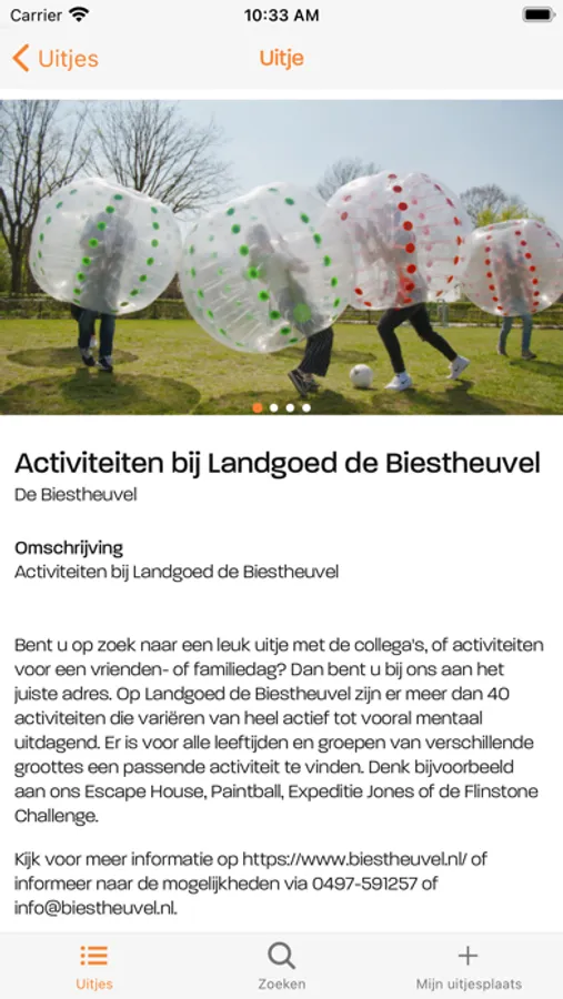 De kracht van Uitjesplaats is dat je zelf kan bepalen wat en wanneer je iets promoot. Dus organiseer je iets, heb je iets aan te bieden, heb je een actie of iets anders. Plaats het nu gratis en eenvoudig op Uitjesplaats. Is het uitje voorbij, dan wordt het automatisch verwijderd. Een “Uitje” is een ruim begrip op Uitjesplaats. Alles wat de vrijetijdssector te bieden heeft, is een uitje. Iedere actie die je verzint, zet het er op. En is de dag voorbij, gaat het er weer vanzelf af. Zo kan je direct anticiperen op bijvoorbeeld het weer, je voorraad etc. Kortom, ben creatief en maak gebruik van het platform.