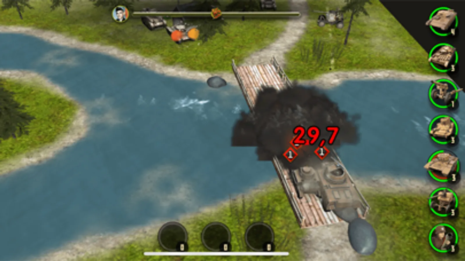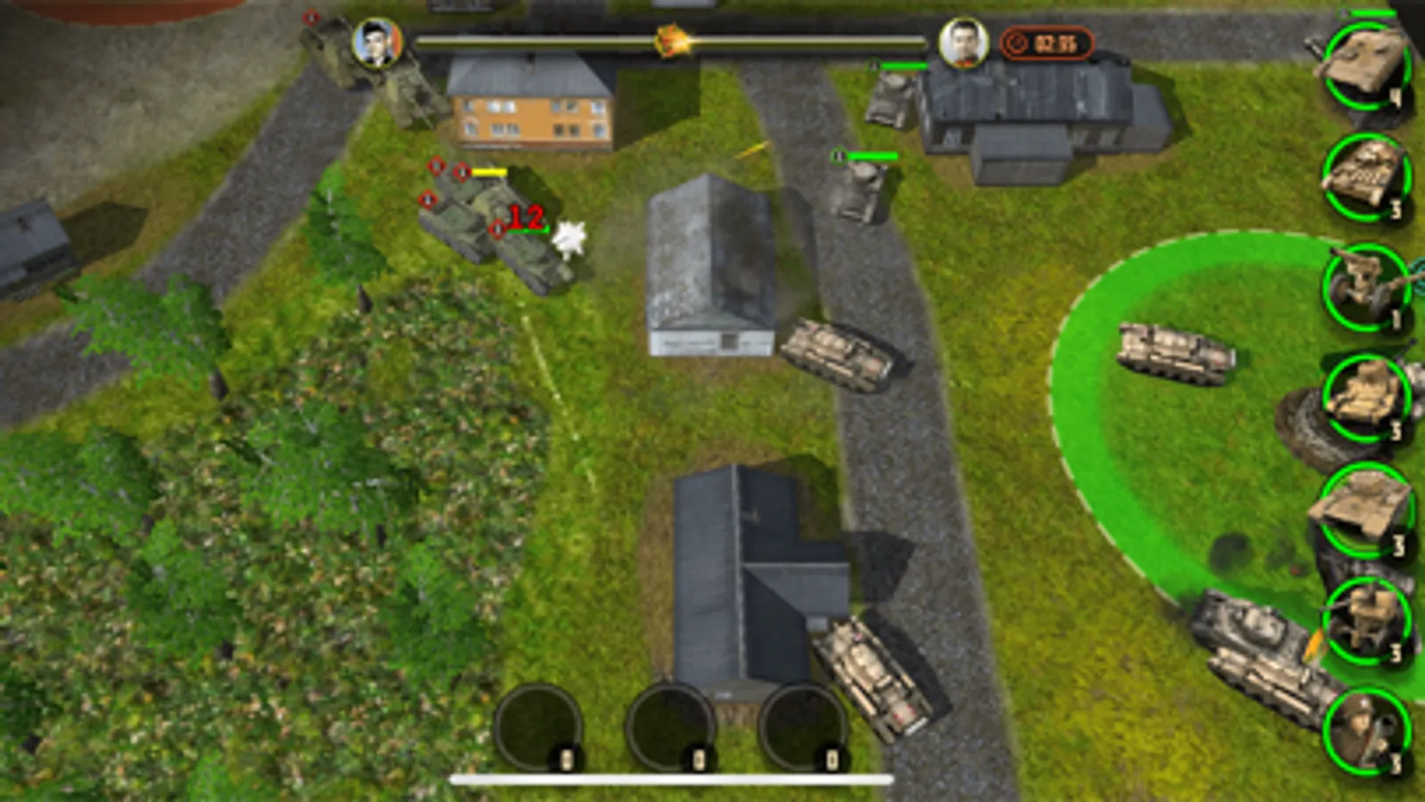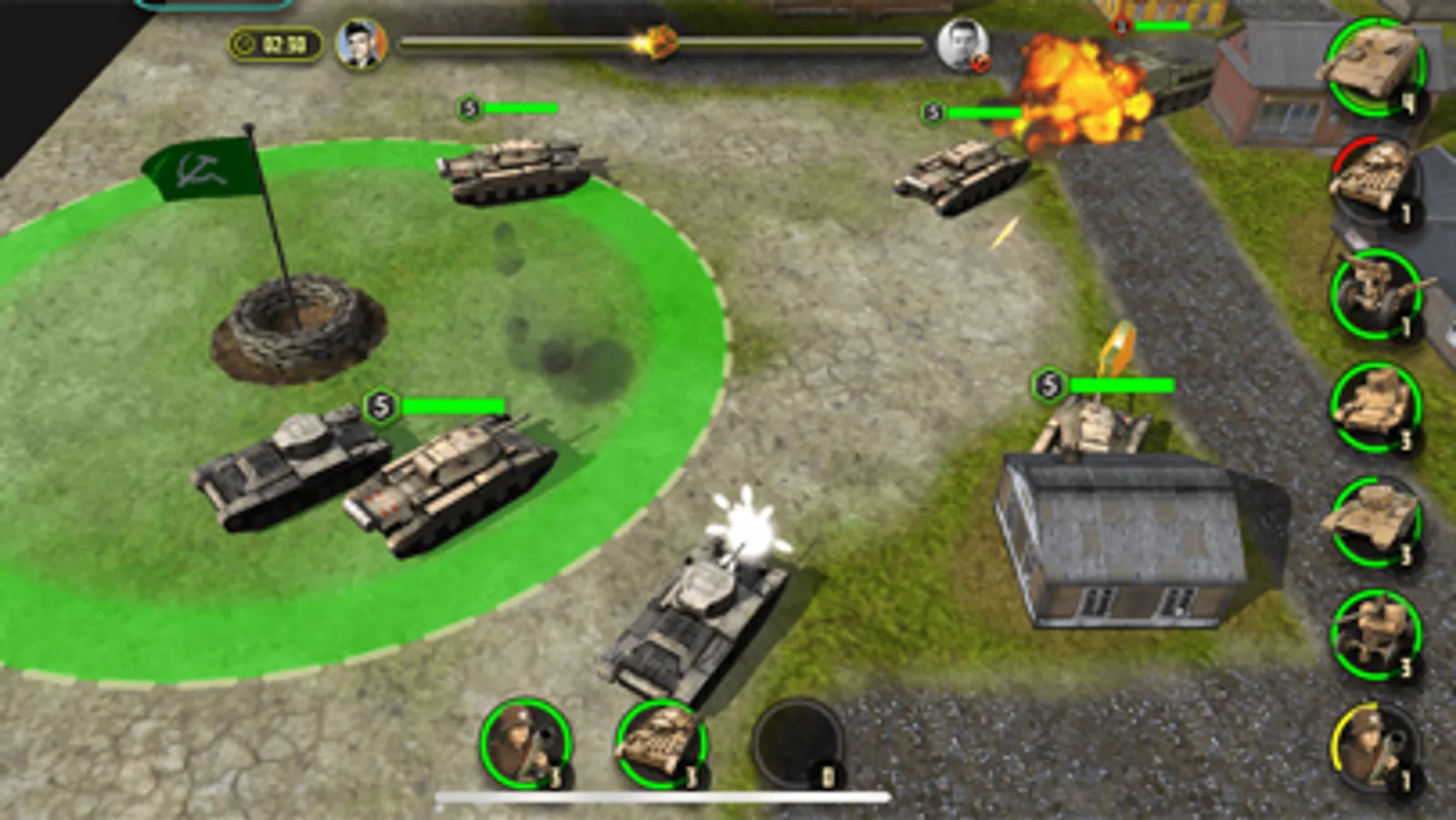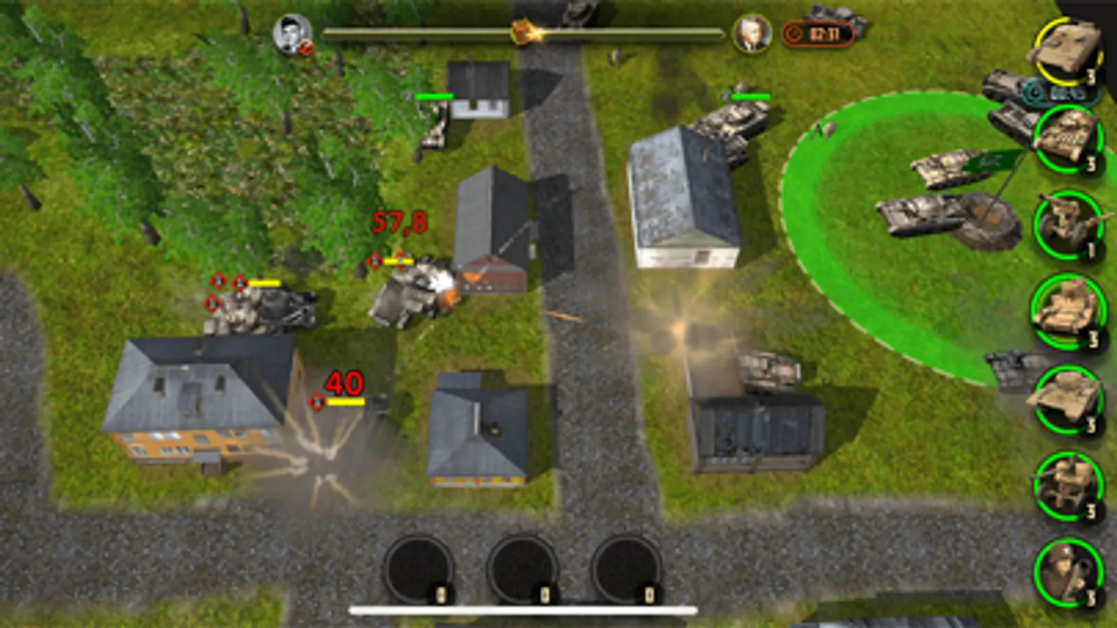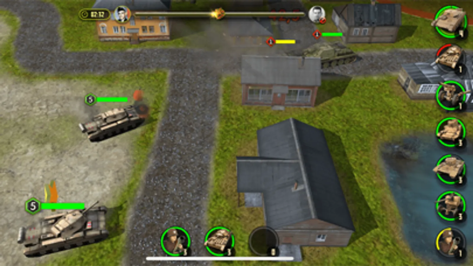 In the game, at any time you can zoom in on the camera to view the battle in great detail. As well as to move it away in order to navigate the battlefield. Thanks to the honest 3D graphics, the camera can be rotated to choose the most comfortable angle. All unit models are made with love and are of the highest quality for mobile gaming standards. You will never confuse the German Tiger tank with the Soviet T-34