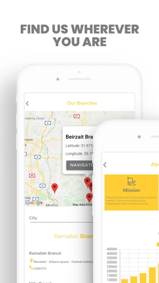 • Contact us information and branch’s locations