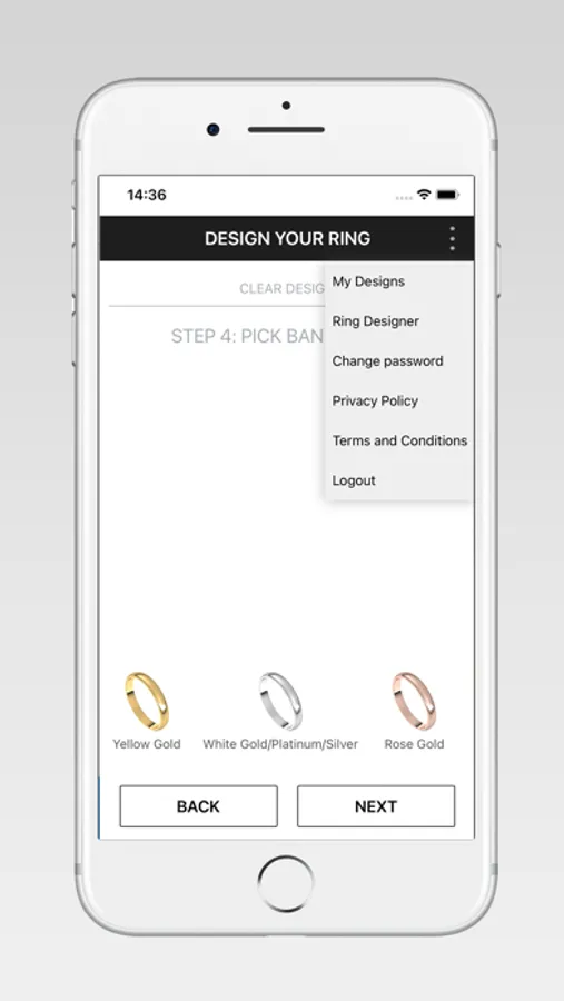 After inquiring about a ring you will be connected to our state of the art jewelry Concierge Service, which is on standby to provide quotes, answer questions or assist with variations not listed on the app