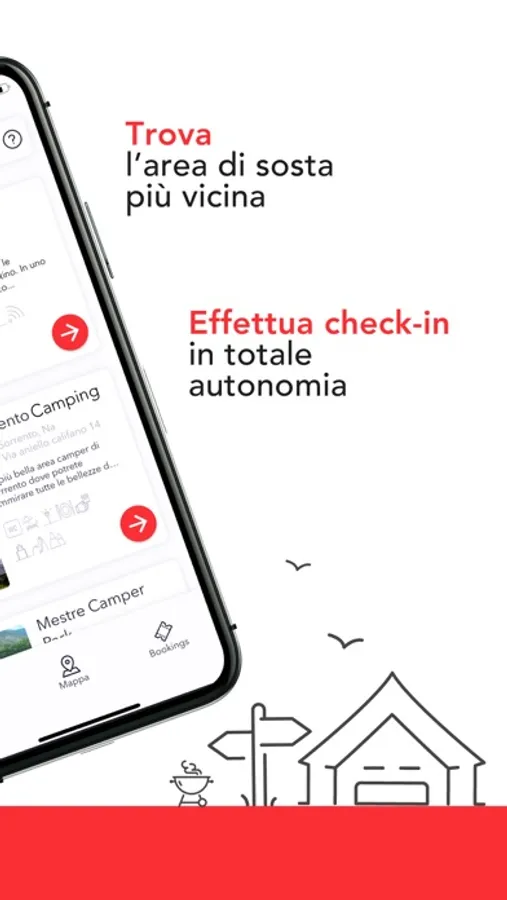 - Trovare l’area di sosta o il campeggio più vicino