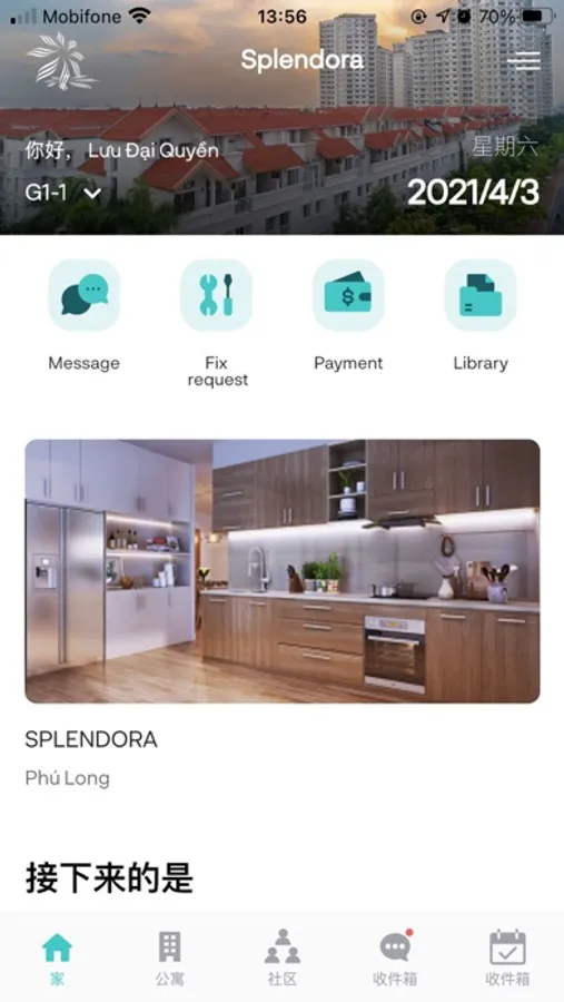 Residents can connect directly with property staff for any servicing issues through the Splendora chat function within the app.