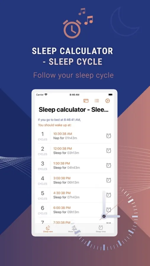 Waking up in the middle of a sleep cycle can leave you groggy and ruin your whole day. Our app helps you find the perfect moment to wake up or fall asleep in order to maximize your sleep and keep you fresh all day. A normal sleep cycle lasts 90 minutes and, using that as a foundation, our app calculates the exact moment when you’re brain and body are ready to awaken.