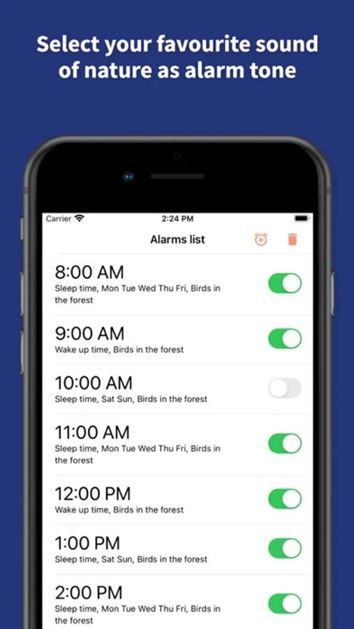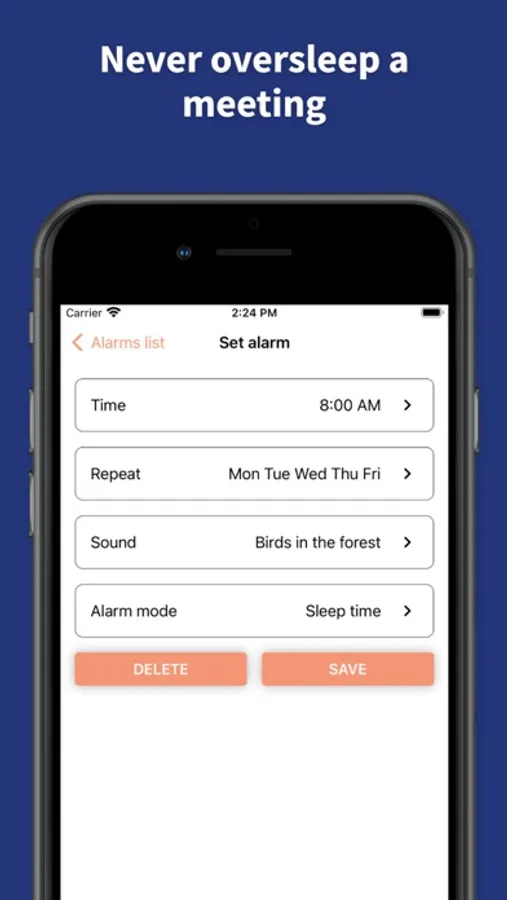 You can also set up alarm with the app and browse all "Sleep Time" alarms inside our app.