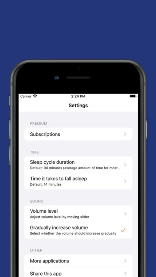 Our app uses natural sounds to slowly bring you out of your sleep cycle and make sure you are wide awake. Once you have selected the sound of your choice, the sound will be played slowly and steadily, increasing in volume, for one minute.