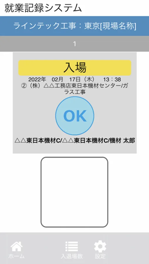 カードから読み取った技術者IDに紐づけされた情報として日時を登録します。