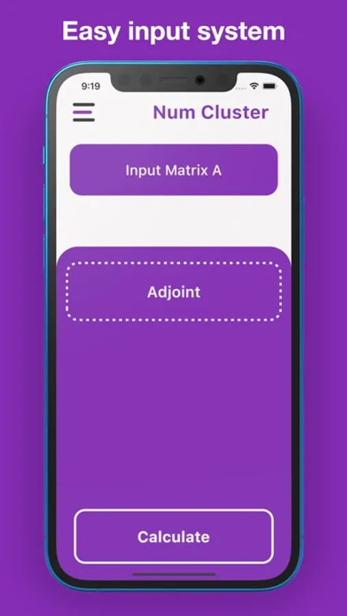 To input question, click on Input matrix 1 or 2 button, and then select number of rows and columns, and after that enter each value of matrix each separated by comma (,). Thats it!! The matrix is inputted. And you can select operator from the drawer. Just Select operator and close the drawer.