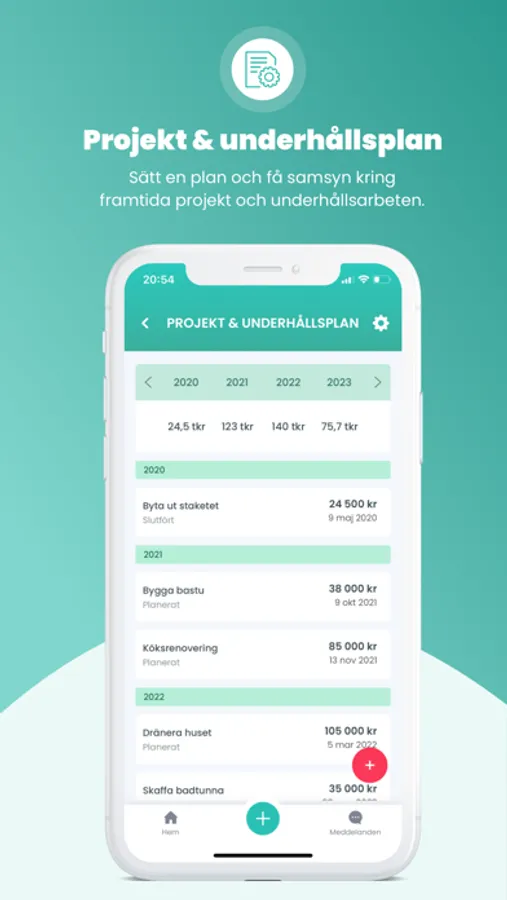 - Lägg till era kommande projekt- och underhållsarbeten och undvik oförutsedda kostnader
