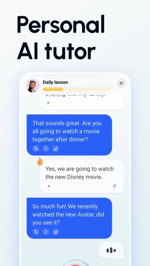 * Personalized conversations at your speaking level, relevant topics that focus on your life.