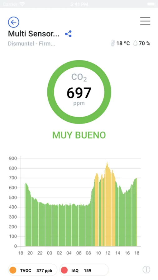 Aplicación de enlace con el dispositivo COzY. El COzY es un dispositivo detector de CO2, TVOC, IAQ, humedad y temperatura.