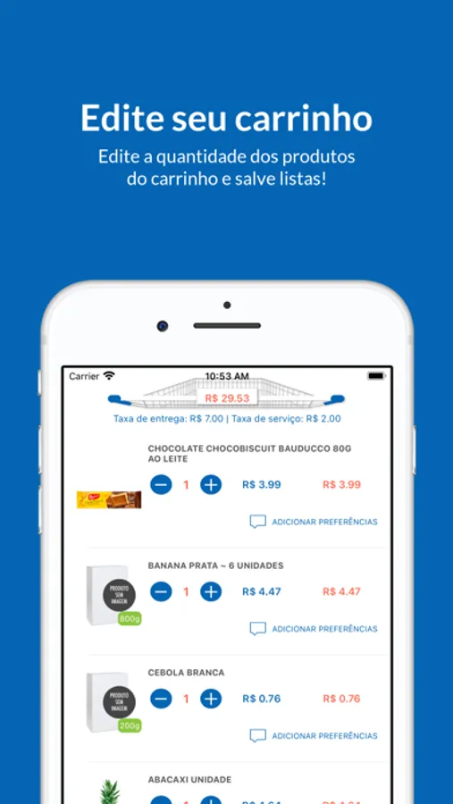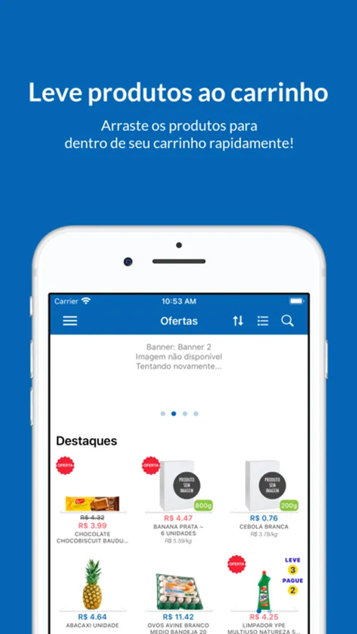 • Adicionar produtos no seu carrinho com um simples tocar e arrastar.