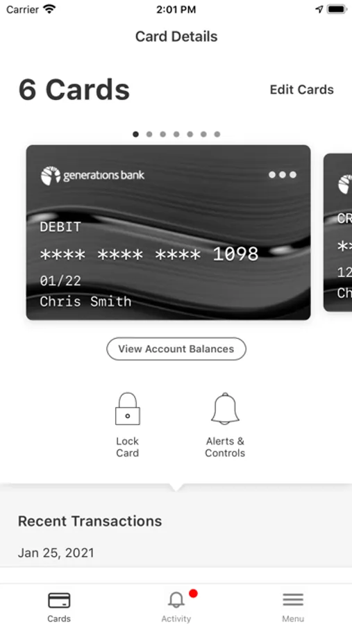 Protects your debit and credit cards by sending transaction alerts and enabling you to define when, where and how your cards are used. Download to your smartphone, then set your preferences to monitor and manage your cards.