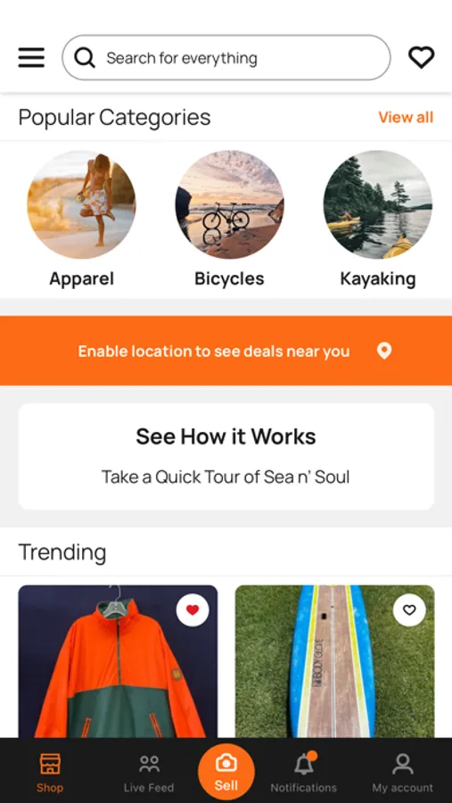 Sea n’ Soul is the 1st resale app for the adventure re-commerce market that gives back to the earth and our users. Together we can reduce waste by facilitating the resale of adventure products, apparel, and clothing. We are helping our communities by giving back to earth-repairing nonprofits and allowing our users to make and save money.