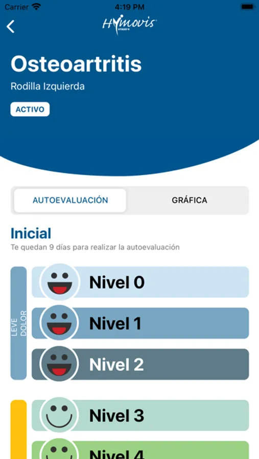 Realiza las autoevaluaciones indicando tu nivel de dolor y notifica a tu médico.