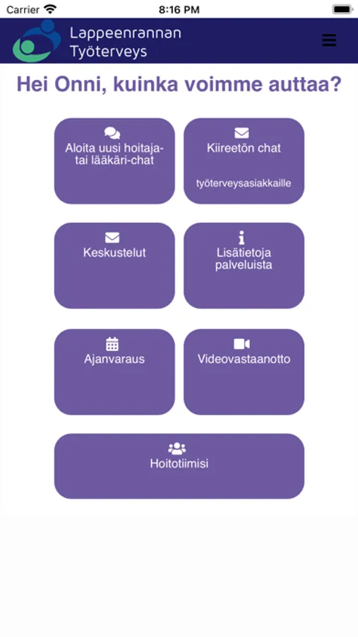Lappeenrannan Työterveys – Etäpalvelusovellus.