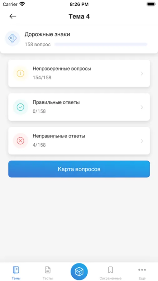 Приложение поможет вам в короткие сроки подготовиться к экзамену по российскому теории вождения.