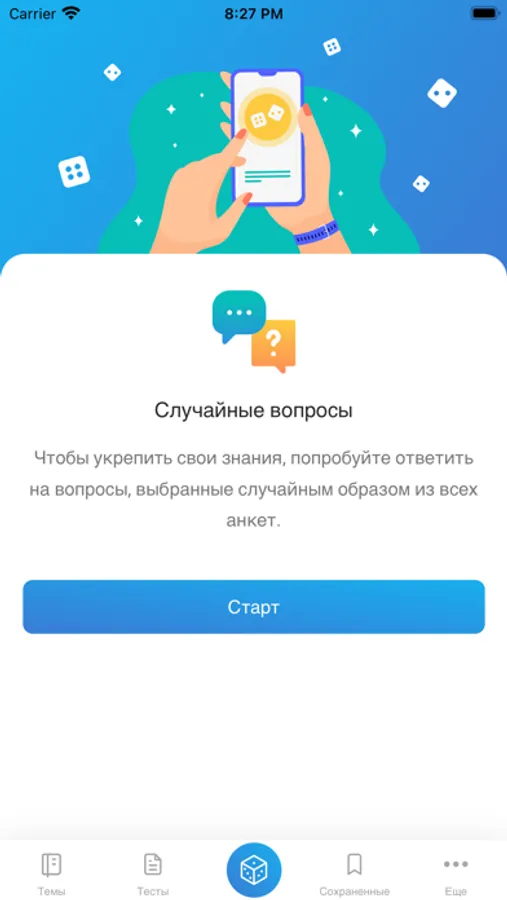 Начните с режима «Викторина» со случайно подобранными вопросами.