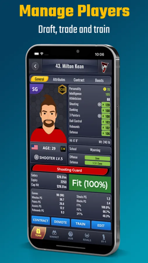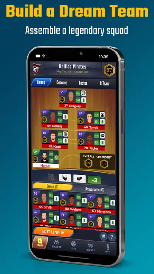 - Assemble a basketball dream team: sign or trade superstars to your team